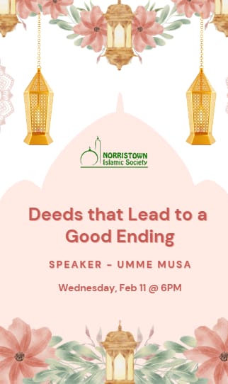 🧕 Sister's event will take place in the extended sisters Musallah area ✨ Topic: Deeds that Lead to a Good Ending 🎤 Speaker: Umme Musa 📅 Wednesday, February 11 ⏰…