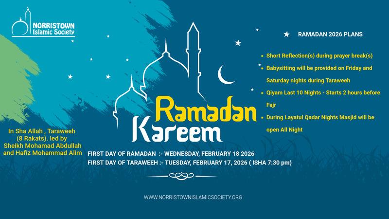 Norristown Islamic Society (NIS), we are committed to fostering a vibrant and inclusive community of Muslims residing in Montgomery County, PA. Rooted in our faith, we maintain strong bonds with other religious groups and actively engage in interfaith activities, community service programs, and social events.